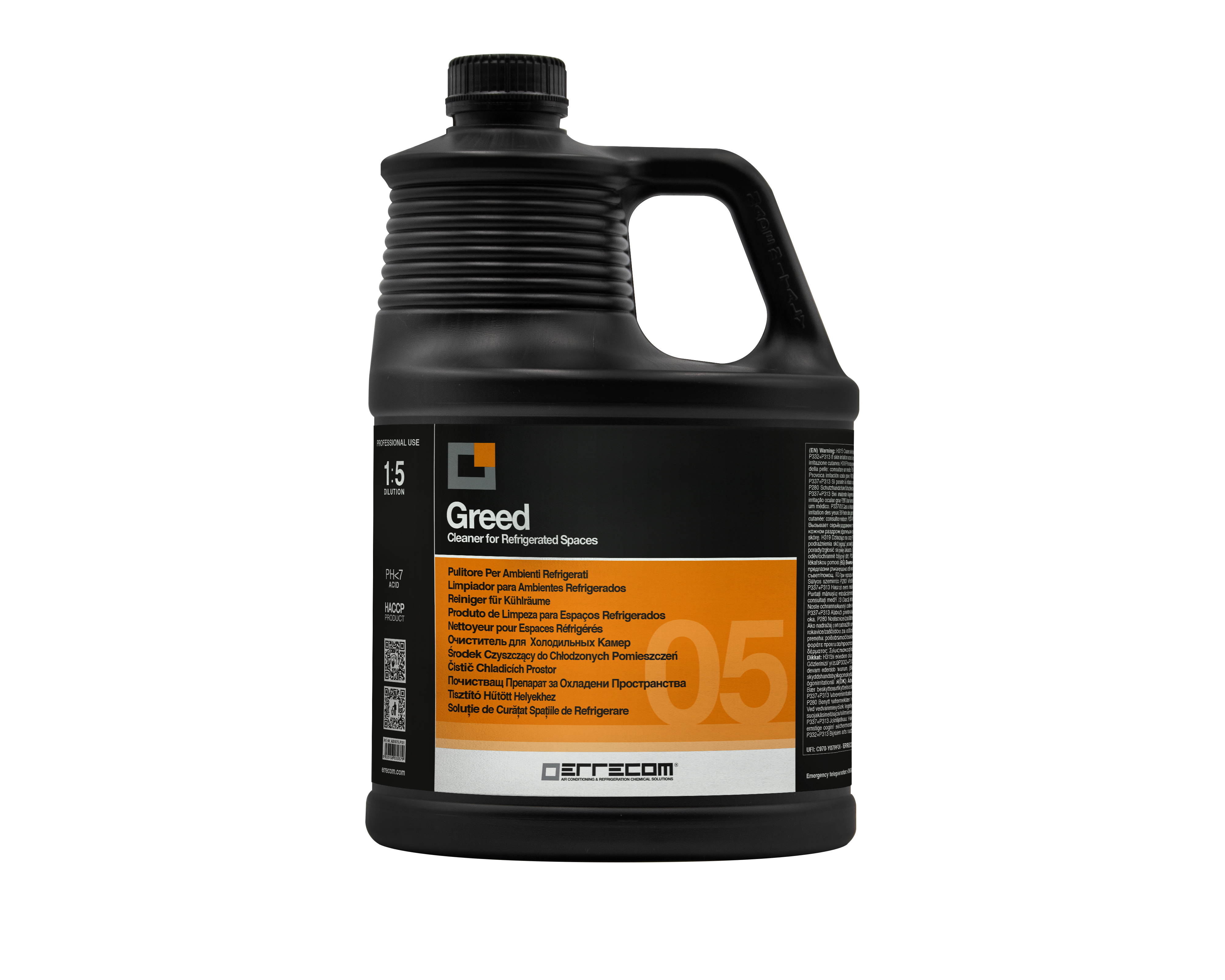 - Fjerner fuldstændigt og hurtigt madrester, fedt, aflejringer og skimmelsvamp fra overfladerne i kølede miljøer, herunder dem, der bruges til madopbevaring (kølerum, køleskabe, frysere osv.) eller fra afløb fra kølerum.