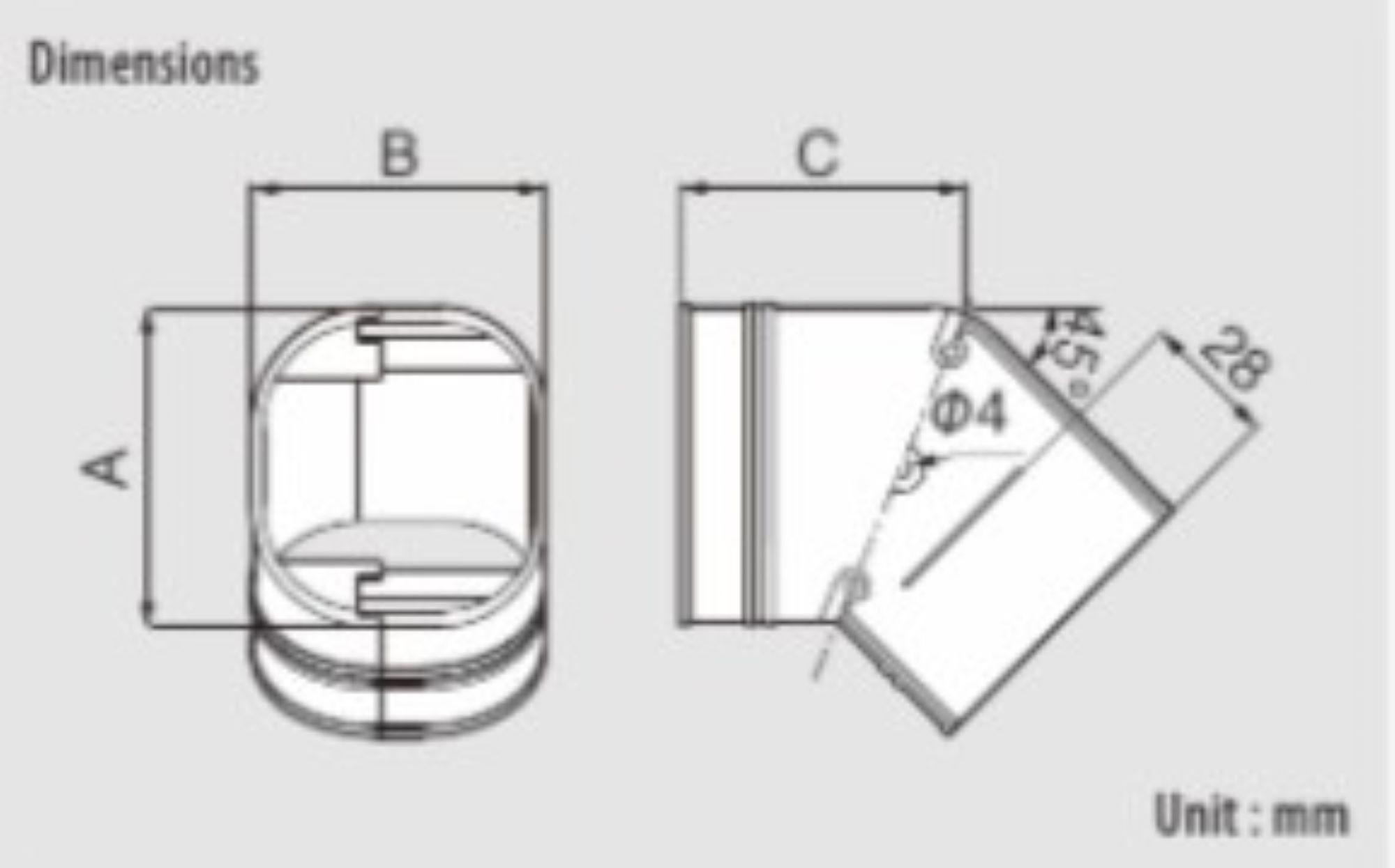 Faconstykket vinkler kanalens retning 45° på den samme væg. Skrues sammen omkring kanalen.