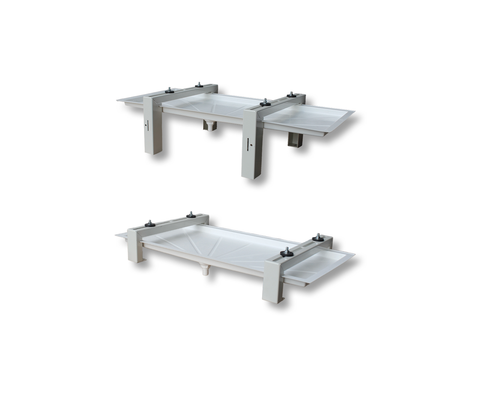 Stålforhøjere med drypbakke - sæt á 2 stk. inklusiv skruer og vibrationsdæmpere.