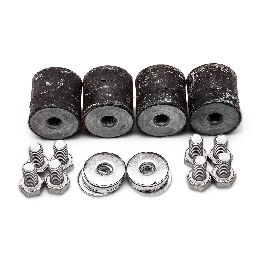 Vibrationsdæmperne monteres mellem konsol og ude del for at optage vibrationer fra udedelen. Anvendes til maskiner med jævnt fordelt last.